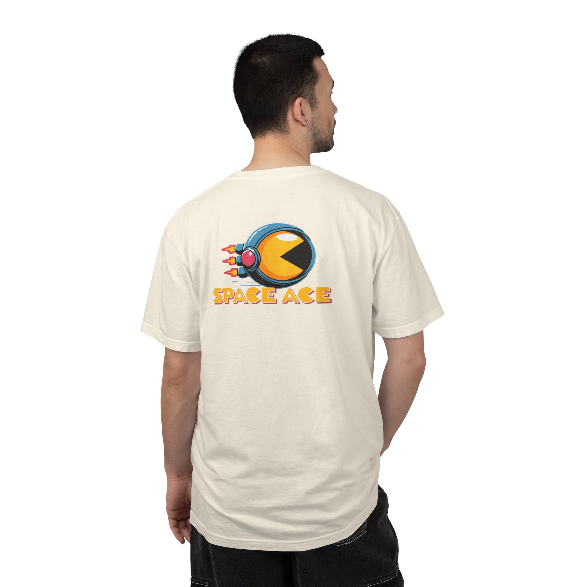 Soft, lived-in comfort meets playful street art. This relaxed-fit tee wears like an old favorite from the first wear: heavyweight 100% ring-spun cotton that’s garment-dyed for a muted, cozy color and a slightly broken-in hand. A neon blue Pac-ghost in electric blue sits center chest — minimal, a little mischievous, and quietly expressive. It layers easily under a jacket or stands alone with jeans. The sewn-in label and double-needle stitching mean it’s built to keep its shape and edge wash after wash. For people who prefer understated graphics and durable, honest fabric, this shirt feels personal — like a small inside joke you can walk around in.