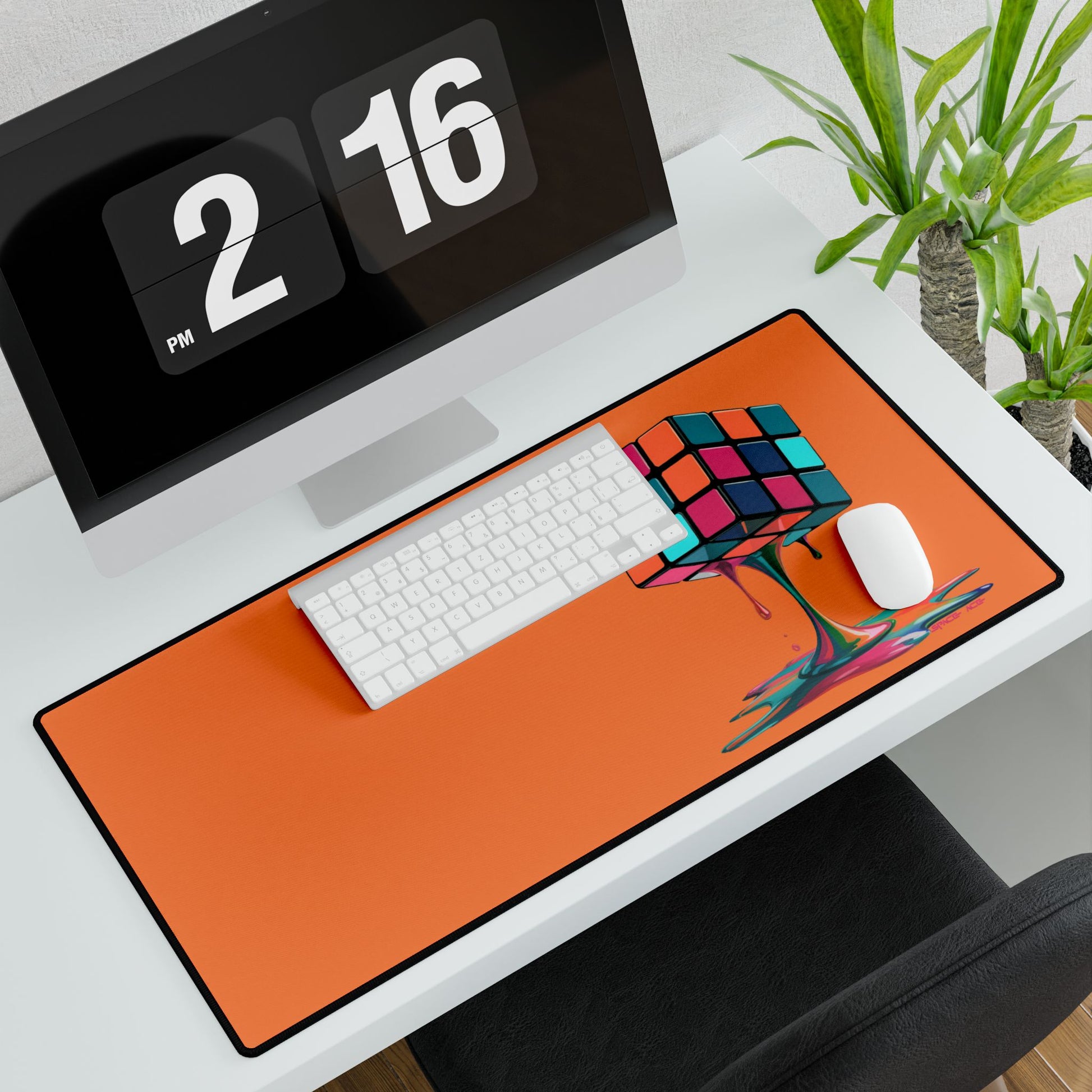 Melting Rubik Cube Desk Mat - Orange Gaming Desk Pad