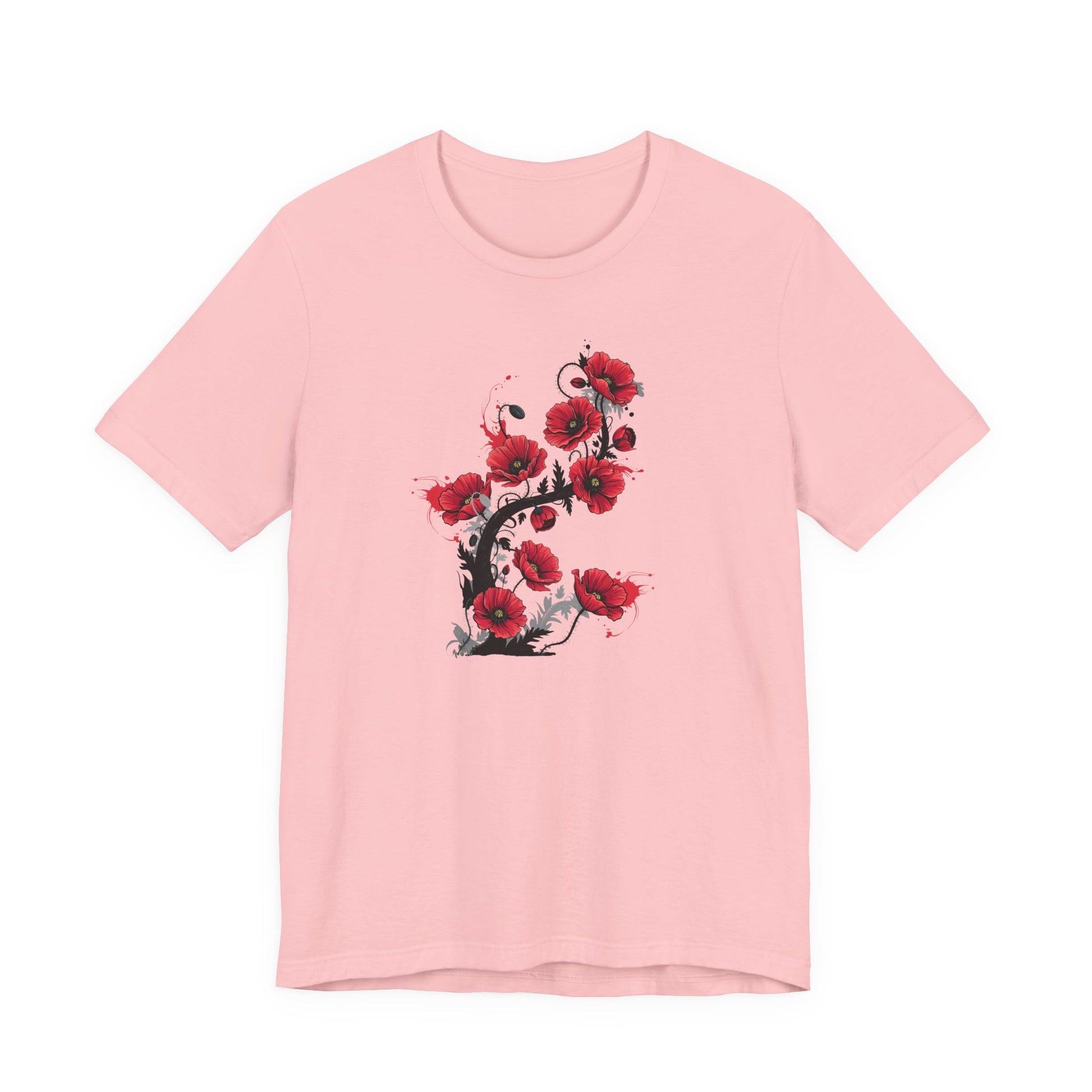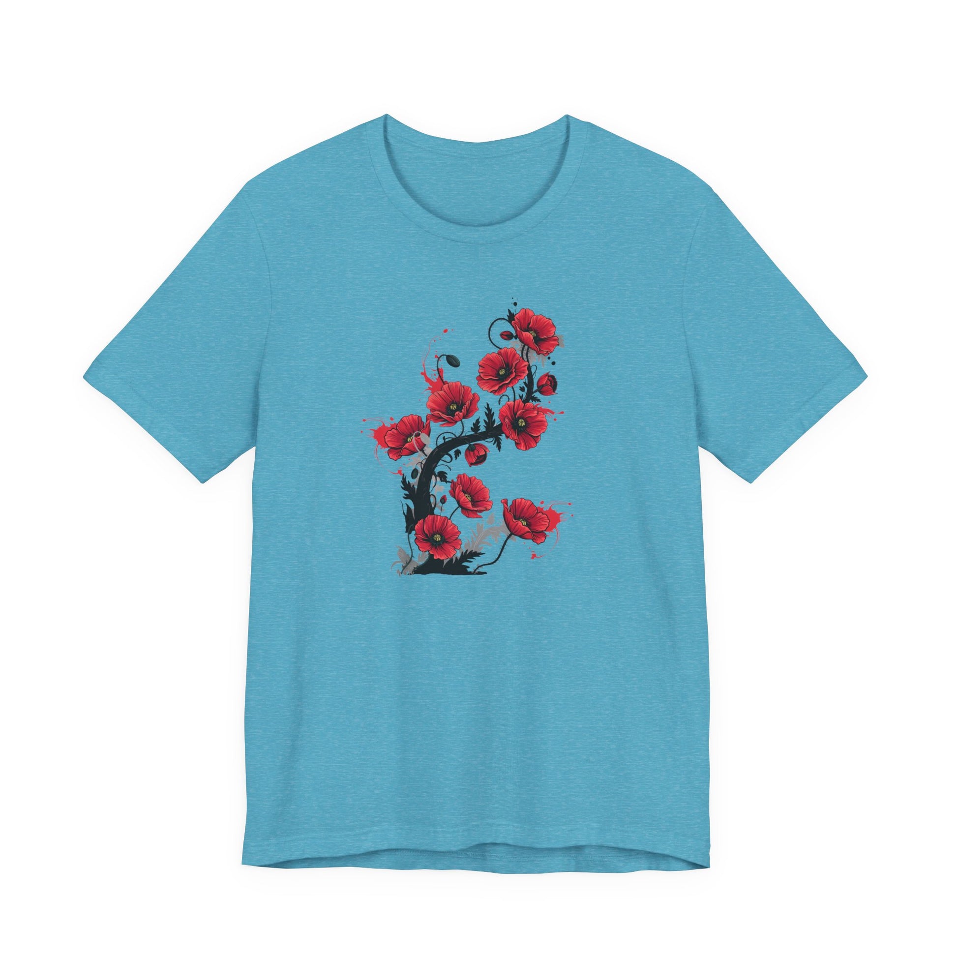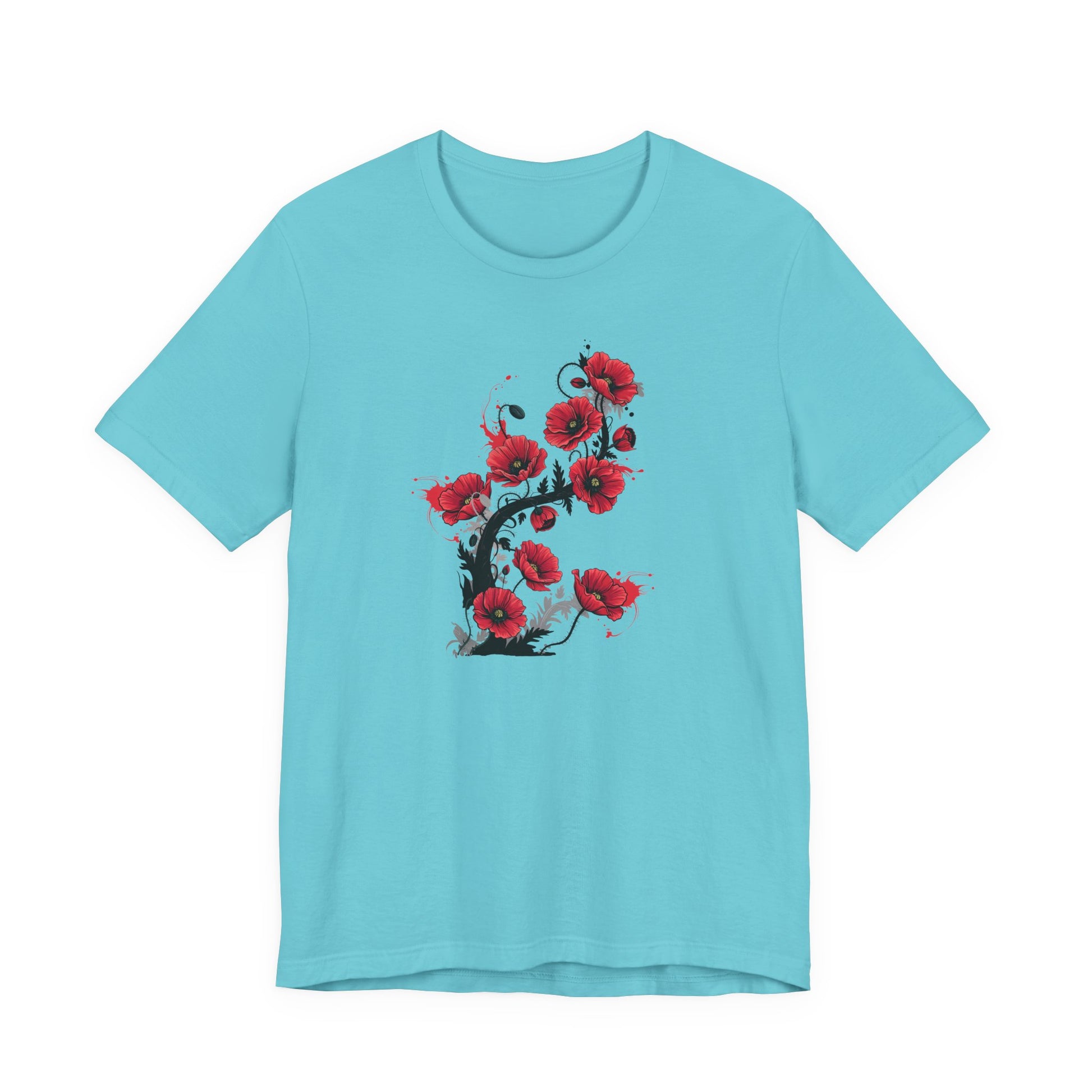 Embrace the simple beauty of nature with this elegant and vibrant poppy t-shirt. Featuring a stunning graphic of bright red poppies, this shirt is a beautiful way to bring a touch of the outdoors into your everyday wardrobe. The bold floral design stands out against the soft, high-quality cotton, making it a comfortable and stylish piece for any occasion.