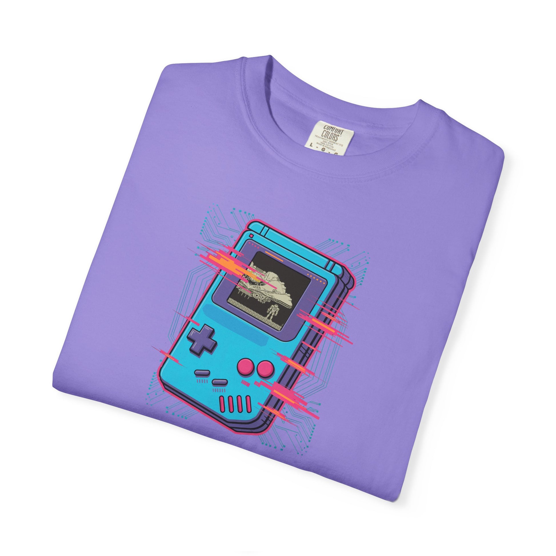 Soft, lived-in cotton meets quiet cosmic mystery. This garment-dyed tee carries a gentle, muted tone and a centered graphic of a portable gaming system. The tubular knit and double-needle stitching give it a clean silhouette and durable finish that only gets better with every wash. Wear it to share a mood, start a conversation, or settle into an evening of stargazing. Product features - 100% ring-spun US cotton — medium weight for durable comfort - Garment-dyed after construction for soft color and lived-in texture - Relaxed fit with tubular knit (no side seams) for a clean silhouette - Double-needle stitching on all seams for long-lasting wear - Available S–4XL with pre-shrunk fabric and sewn-in label Care instructions - Machine wash: cold (max 30C or 90F) - Do not bleach - Tumble dry: low heat - Iron, steam or dry: low heat - Do not dryclean
