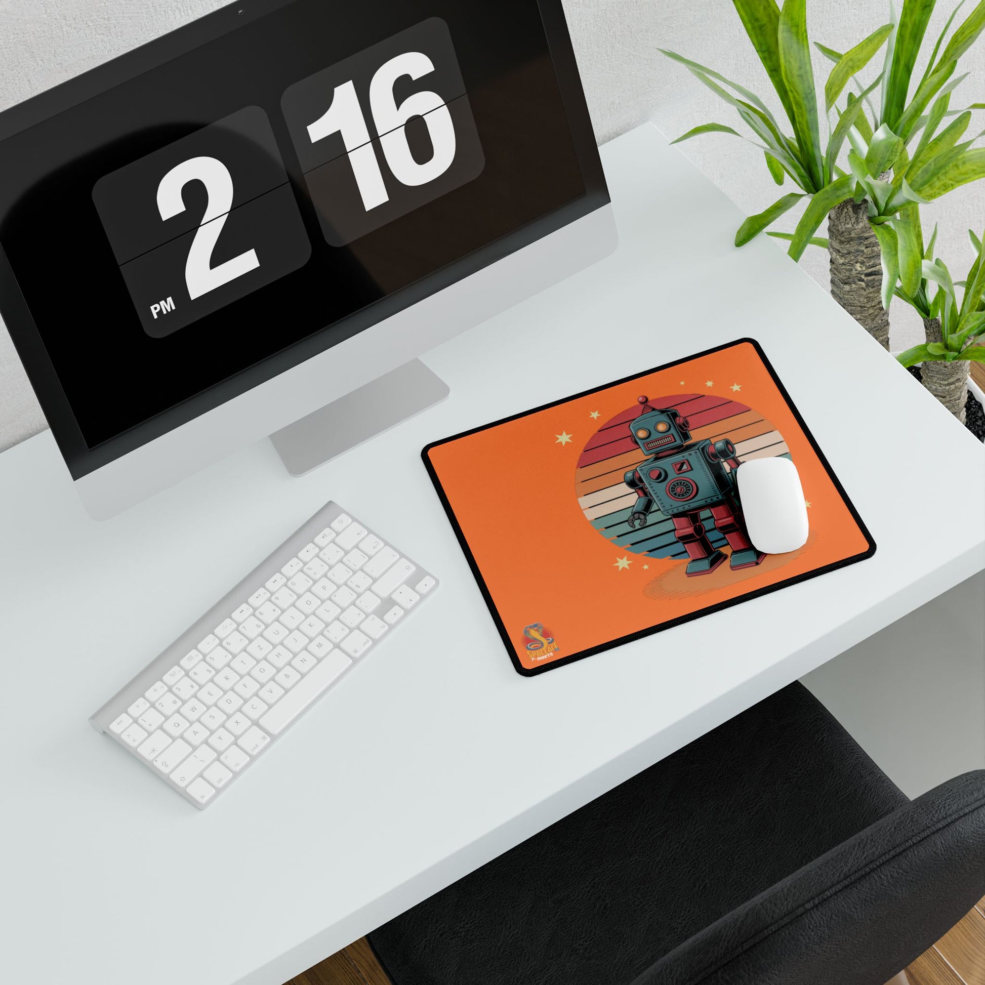 Retro Robot Desk Mat - Orange Gaming Desk Pad