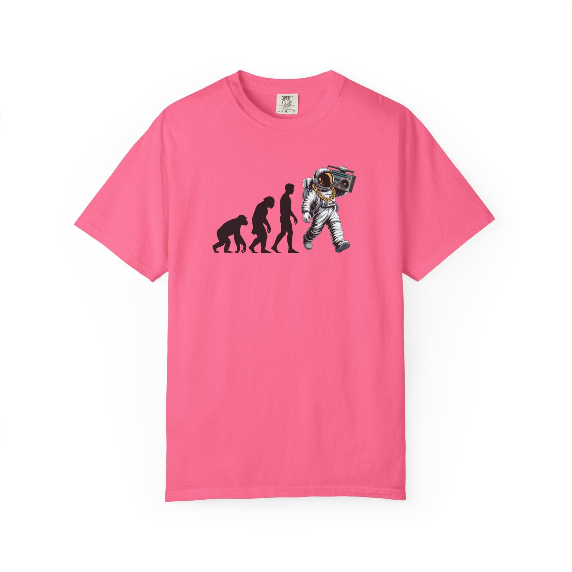 This softly garment-dyed tee carries a small, witty evolution graphic that ends with an astronaut—subtle, clever, and quietly adventurous. The midweight cotton feels lived-in from the first wear, the relaxed fit drapes easily over layers, and the muted natural color gives the print room to stand out without shouting. Wear it on coffee runs, at backyard stargazing, or while tinkering on weekend projects; it nods to curiosity and the quiet joy of imagining what’s next.
